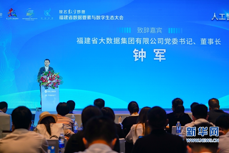 福建省大數(shù)據(jù)集團(tuán)有限公司黨委書記、董事長鐘軍在論壇上致辭。新華網(wǎng) 蔣巧玲 攝