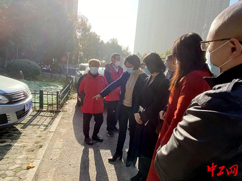 政協(xié)委員與“小巷管家”現(xiàn)場察看小區(qū)停車狀況。施院生 攝